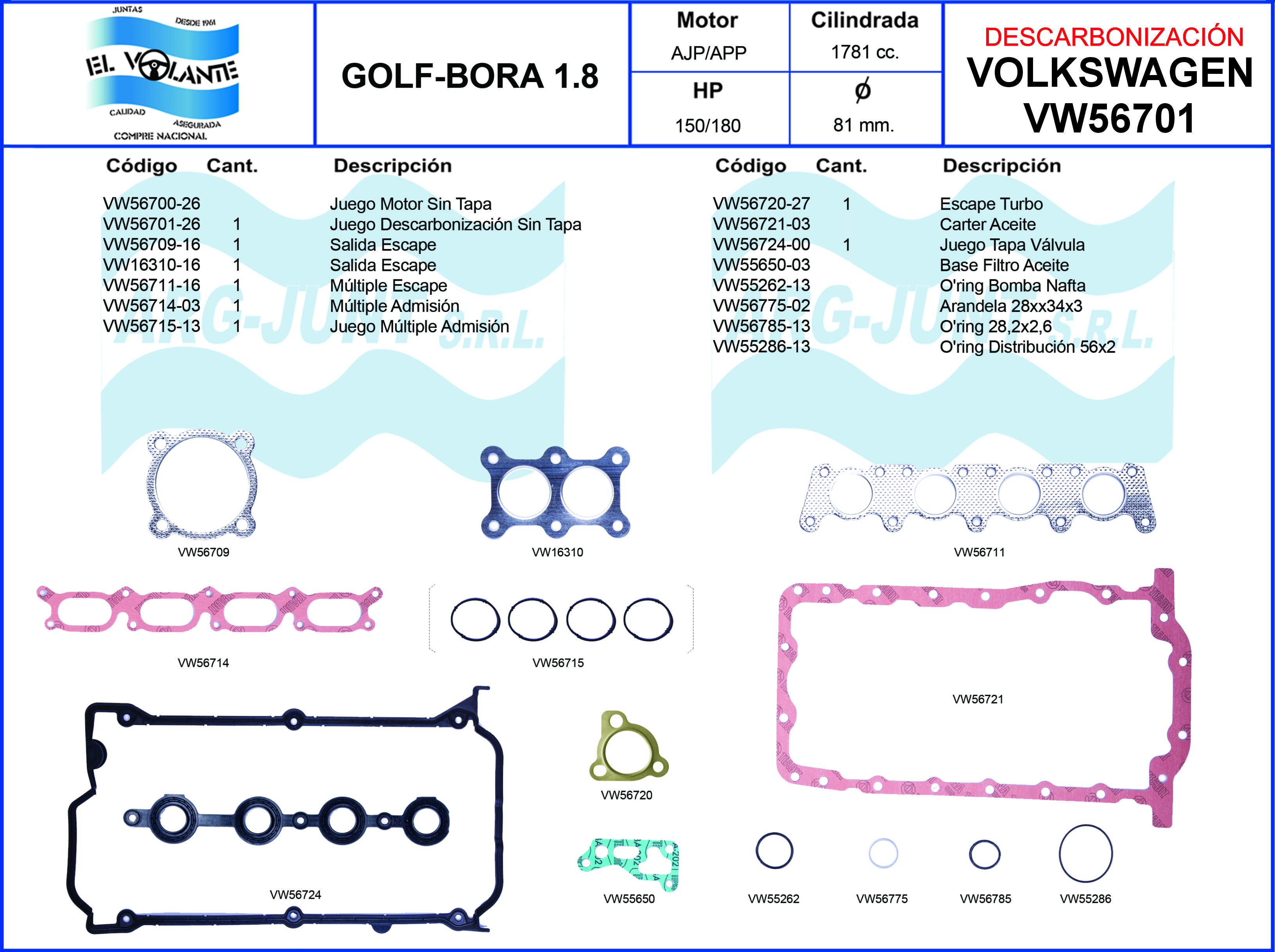 J.MOT.VW GOL/SAVEIRO/POLO 16 V